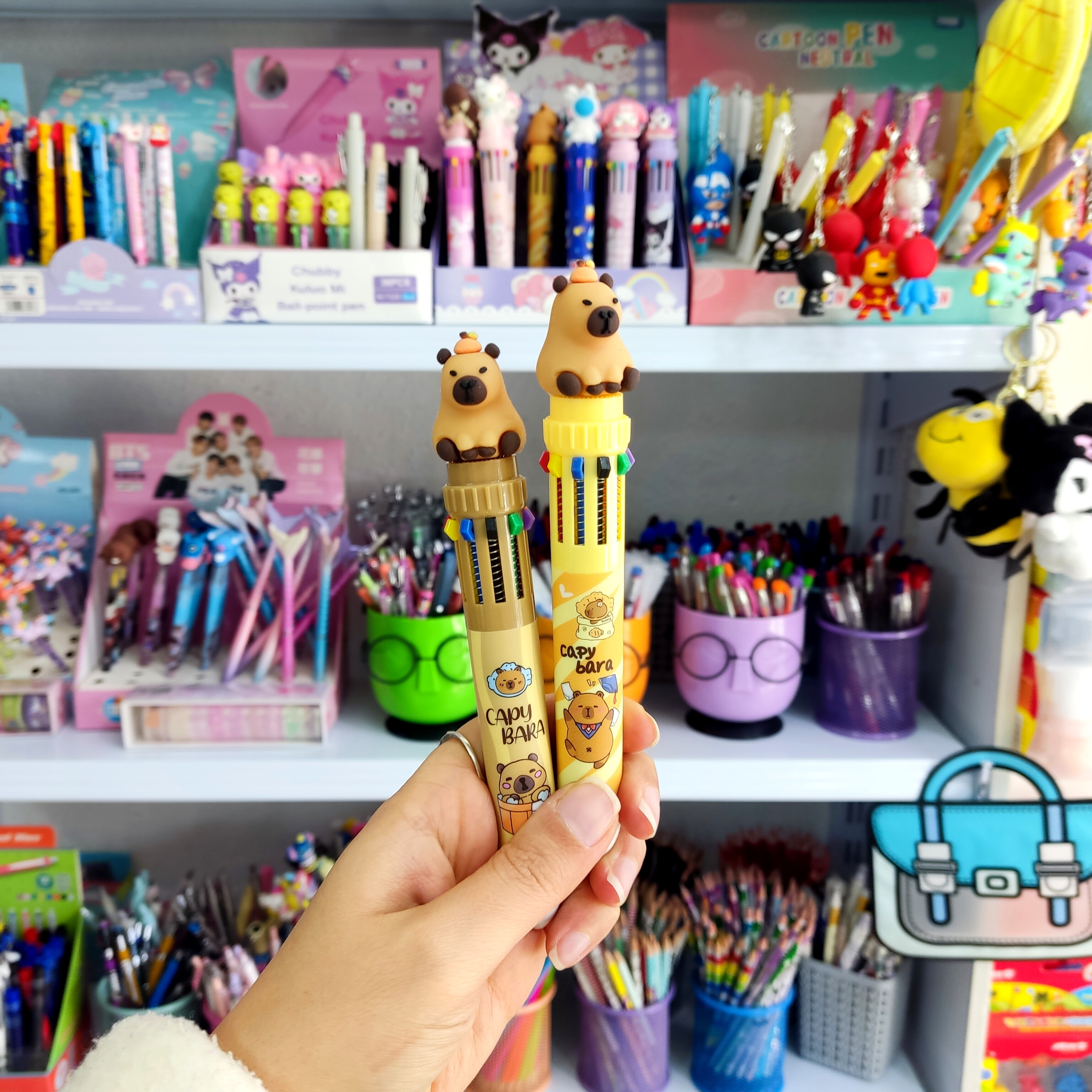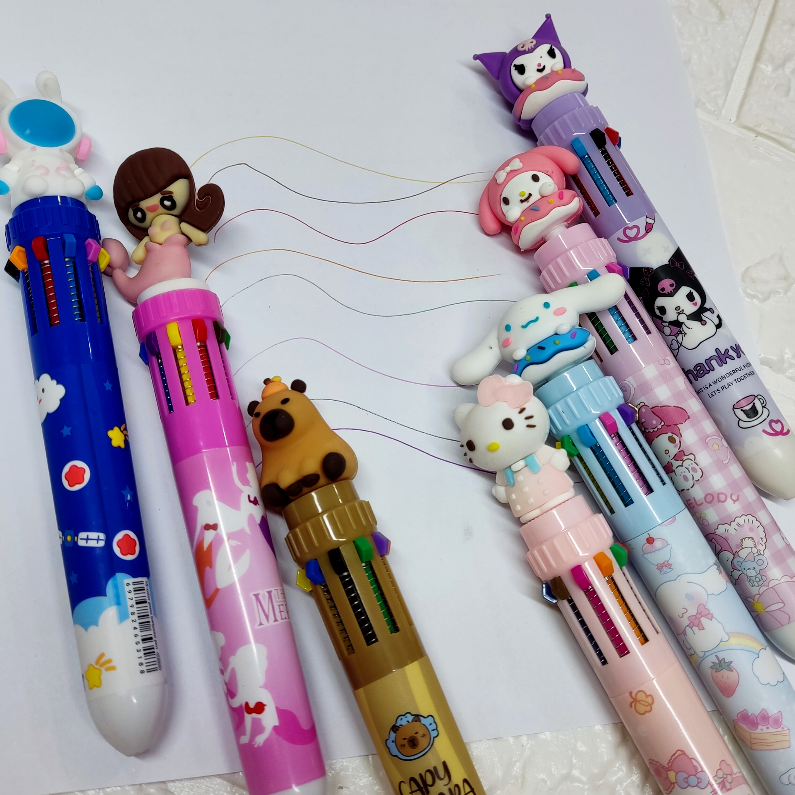 خودکار فشاری ده رنگ با فشار دادن عروسک بالای خودکار میتونید خودکار رو برای رنگ بعدی آماده کنید بسیار روان و نرم مینویسه