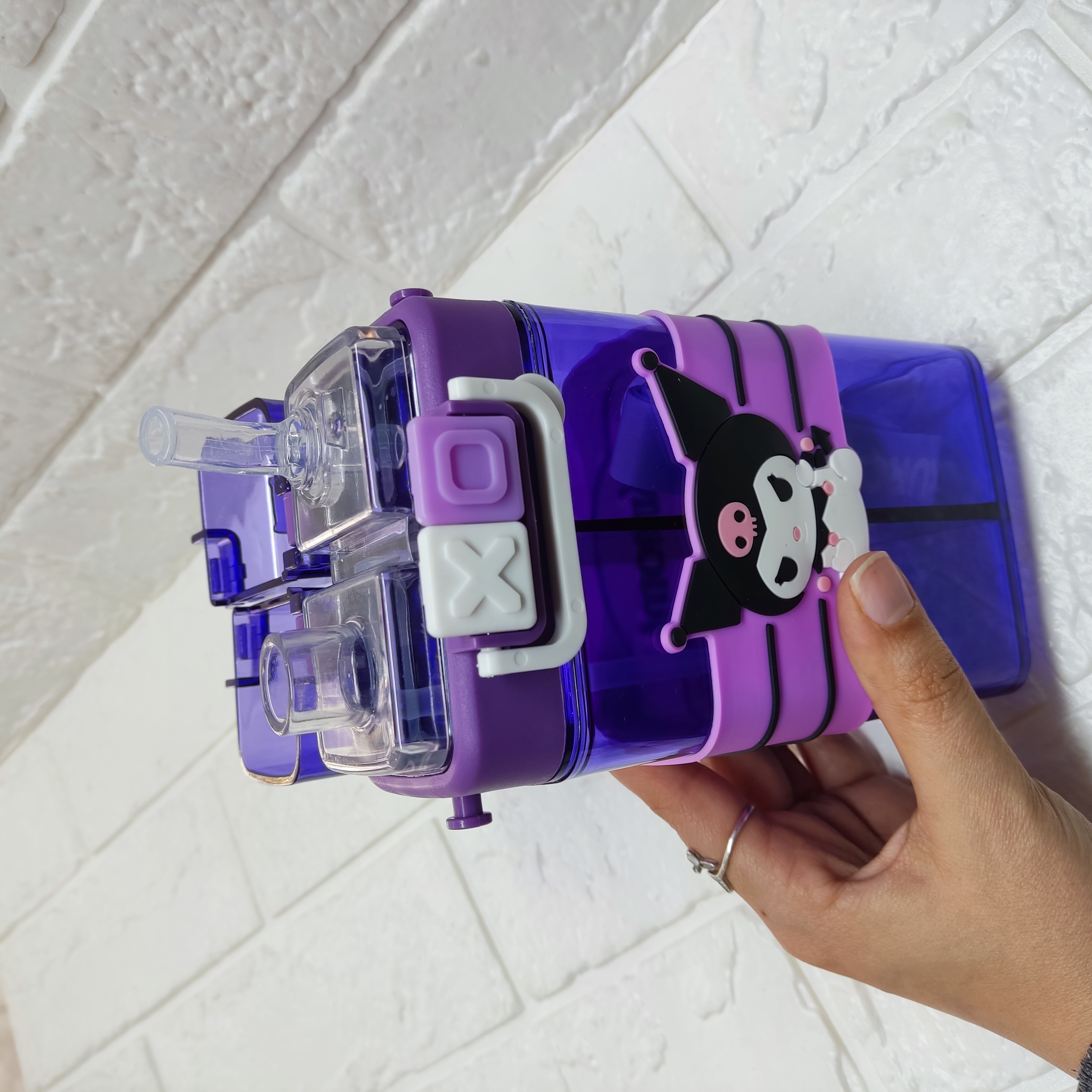 قمقمه دو مخزنه با دو سری مجزا نی نوش و آسان نوش دارای دسته برای حمل راحت و همینطور بند سرشانی بلند جنس قمقمه پلی کربنات نشکن داخل یکی از مخزن ها لوله ای قرار داده شده که میتوان برای تهیه دتاکس واتر (آب طعم دار با میوه ها و سبزی های تازه) از آن استفاده کرددر صورت عدم تمایل هم به راحتی جدا میشه