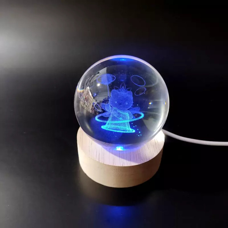 گوی کریستالی که قطرش 6 ونیم سانتی متره با کابل مستقیم به شارژر وصل میشه و روشنایی داره