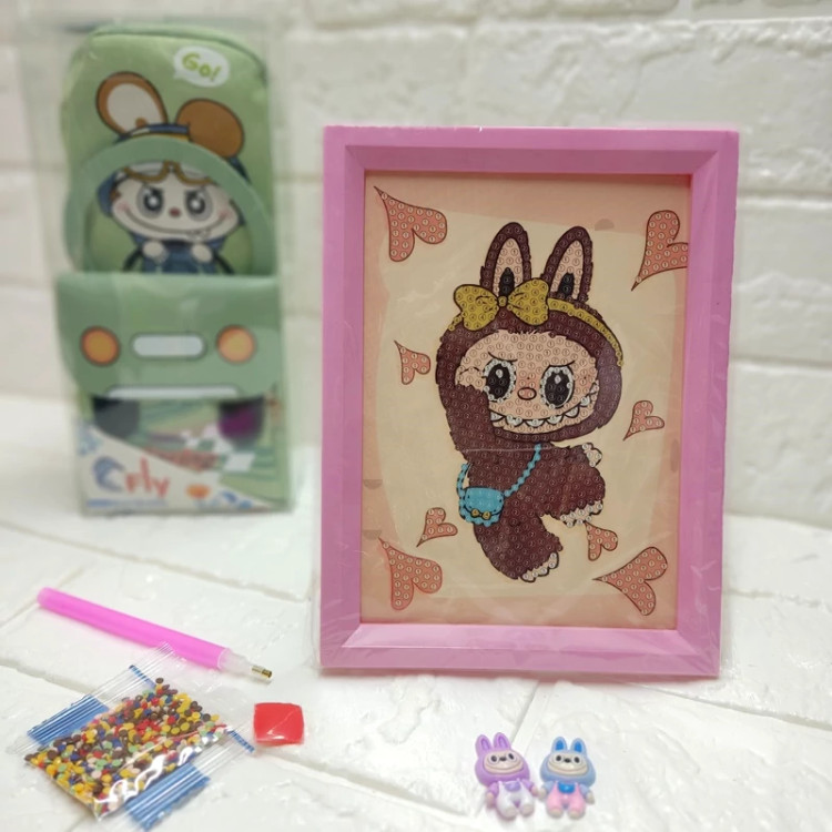 نقاشی الماسی لبوبو با کلی طرح خوشگل شارژ شد 🥳💃 بعضی طرح ها تعدادش محدوده پس دست دست نکن🫣 ابعاد قاب 13*18 سانتی متره 📏 ابزار لازم شامل قلم موم و نگین ها داخل هر بسته هست 👌 اولش فقط یه سرگرمیه ولی بعدش برای دیزاین اتاق بچه ها عالیه😃👌